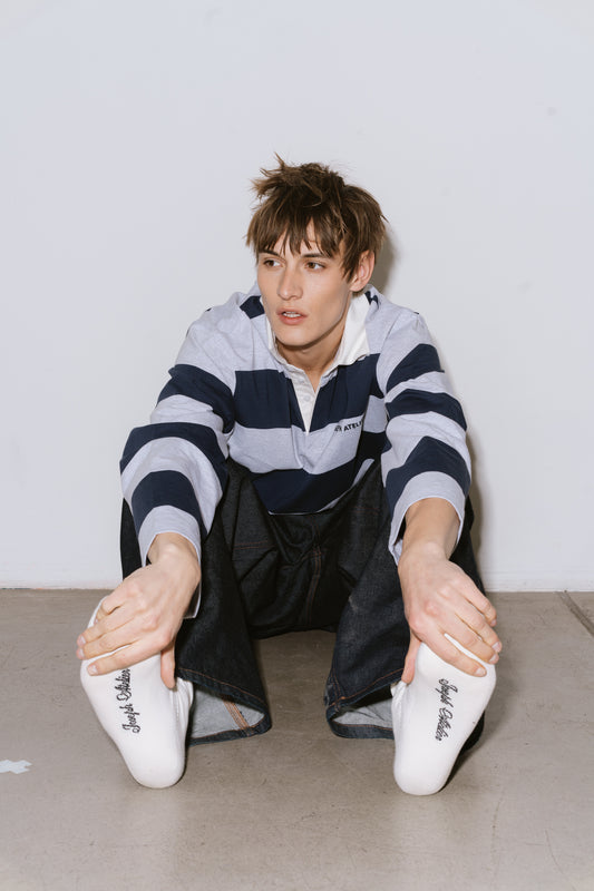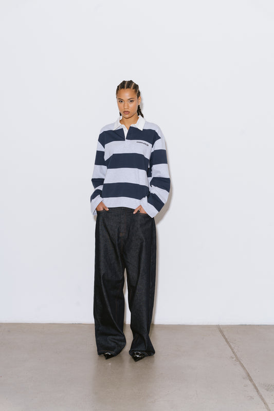 polo longsleeve stripes - navy & grey